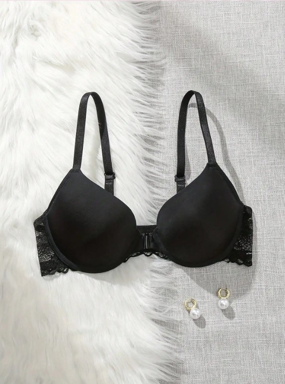 Front-Buckle Lace Splice Push-Up Bra – Elegance, Comfort & Confidence in One